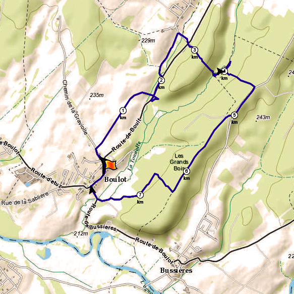 Départ de la randonnée : Parking de la mairie de Boulot